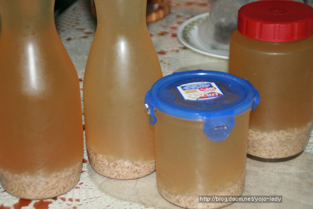 4/ 발효를 도우려면 설탕 한 컵도 함께 넣으면 시간을 단축시킬 수가...4~5시간이면 밥알이 (10~20개)동동 뜬다.