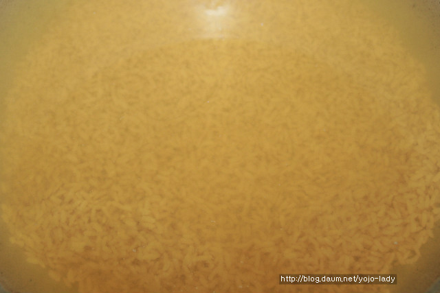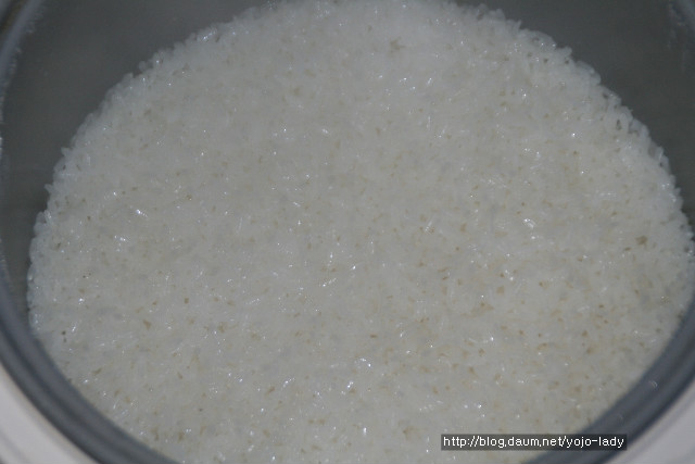 3/웃물만 따뤄서 밥솥에 적당량 부어서 밥알을 잘 풀어준다.↗