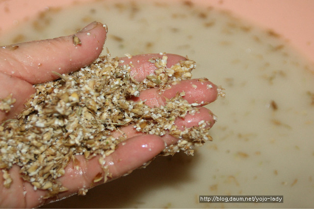 1/엿기름 400g을 따뜻한 물에(40도를 넘으면 엿기름 효소가 죽어버린다) 치대어서 발이 곱고 가는 채를 사용해서 웃물만 따루고