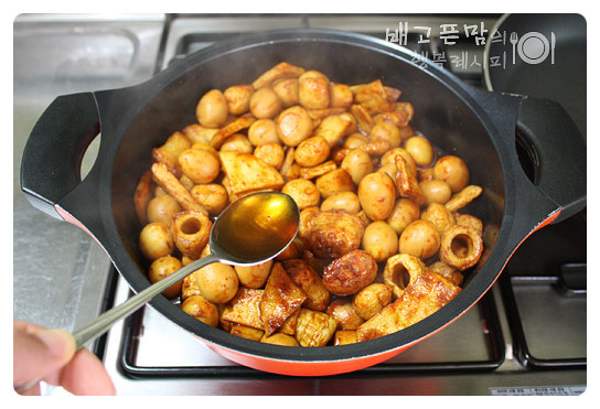 양념이 자박하니 한층 정도 남을 정도록 졸여 지면
