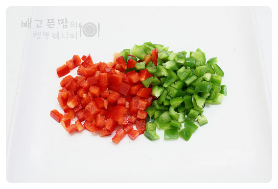 다진 피망,파프리카를 넣고 한번만 고루 잘 섞어 주시면 된답니다.